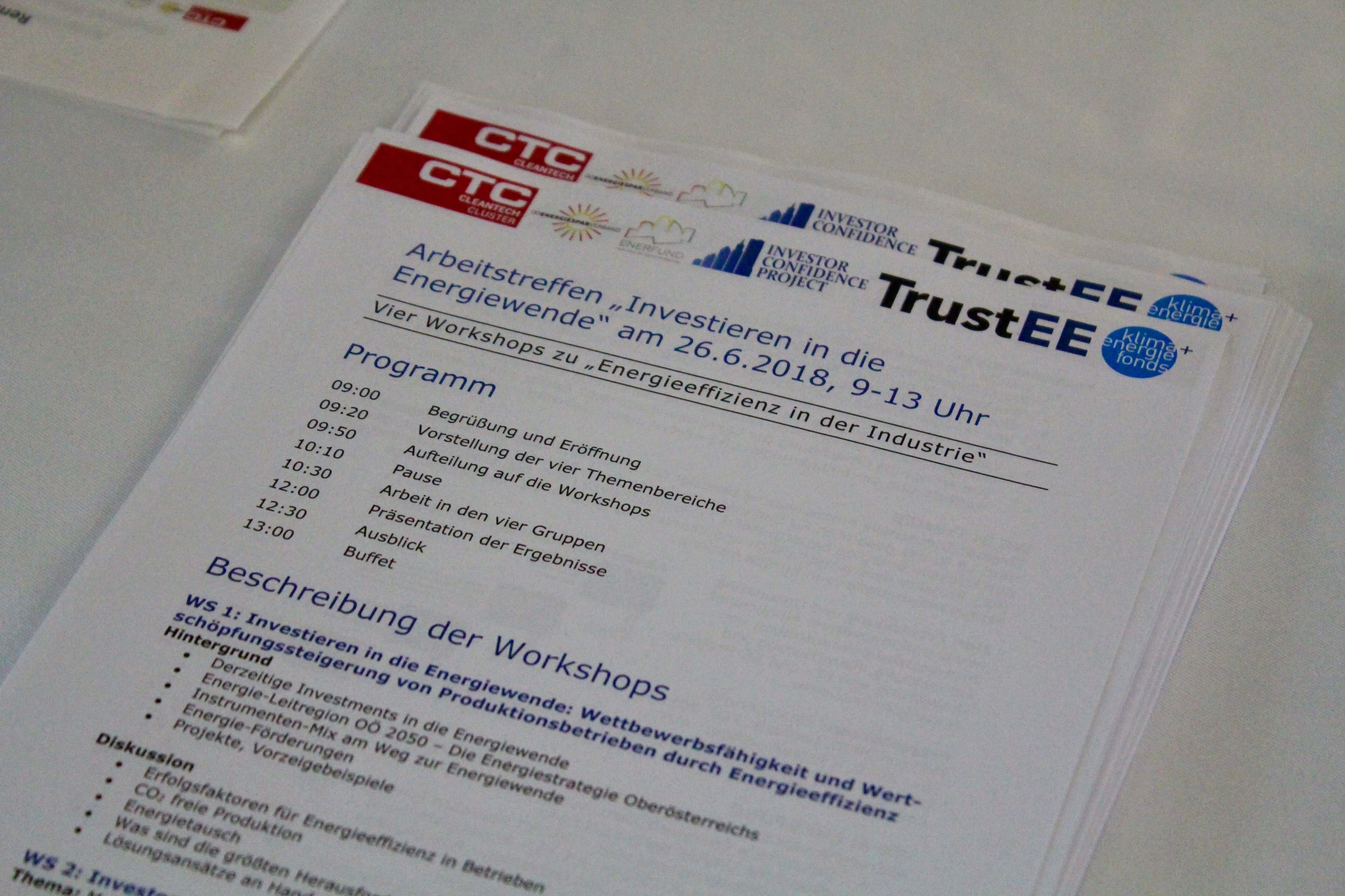 Der Klima- und Energiefonds veranstaltet daher am 26.06.2018 in Kooperation mit den EU H2020-Projekten Investor Confidence Project (ICP) Europe (denkstatt) und TrustEE (AEE INTEC und REENAG) sowie dem OÖ Energiesparverband und der OÖ Wirtschaftsagentur ein Arbeitstreffen mit vier Workshops an der Schnittstelle von Projektentwicklung/-bewertung und Finanzierung. Im Mittelpunkt dieser Fachveranstaltung steht die Darstellung innovativer Ansätze, die Diskussion praxisnaher Fragestellungen und der Erfahrungsaustausch zur standardisierten Projektentwicklung und -bewertung für die Finanzierung von industriellen Energieeffizienzprojekten.