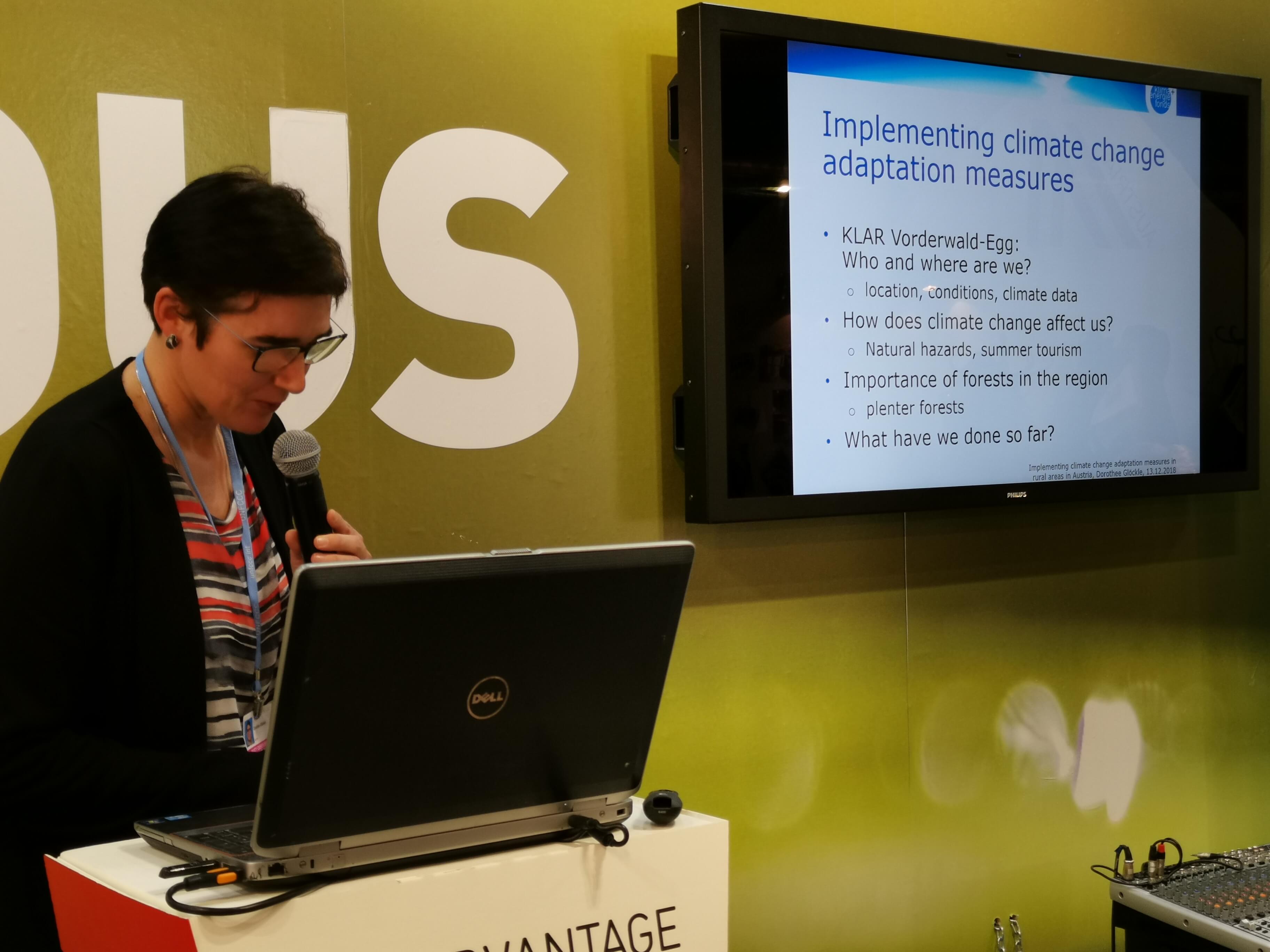 Diese Möglichkeit bot sich der Region Vorderwald-Egg in den letzten Wochen gleich mehrmals: Auf Einladung des Klima- und Energiefonds, der als Partner des Österreich-Pavillons der Wirtschaftskammer Österreich bei der UNO-Klimakonferenz im polnischen Katowice vergangenen Dezember teilnahm, konnte Dorothee Glöckle, Managerin der KLAR! Vorderwald-Egg ihre Erfahrungen aus Vorarlberg vor einem internationalen Publikum präsentieren.: Glöckle: „Landwirtschaft, Wald, Tourismus und Handwerk sind die wesentlichen Wirtschaftsbereiche der Gemeinden des Vorderen Bregenzerwaldes. Wir sind deshalb in hohem Maße von der Natur abhängig und vom Klimawandel stark betroffen. Durch aktives Arbeiten am klimafitten Wald wollen wir die Wirtschaftlichkeit, Schutzfunktionalität, Erholungsfunktion, Naturnähe und Nachhaltigkeit der Wälder erhöhen und damit die Region als Ganzes stärken. Die Fördermittel aus KLAR! machen das möglich.“