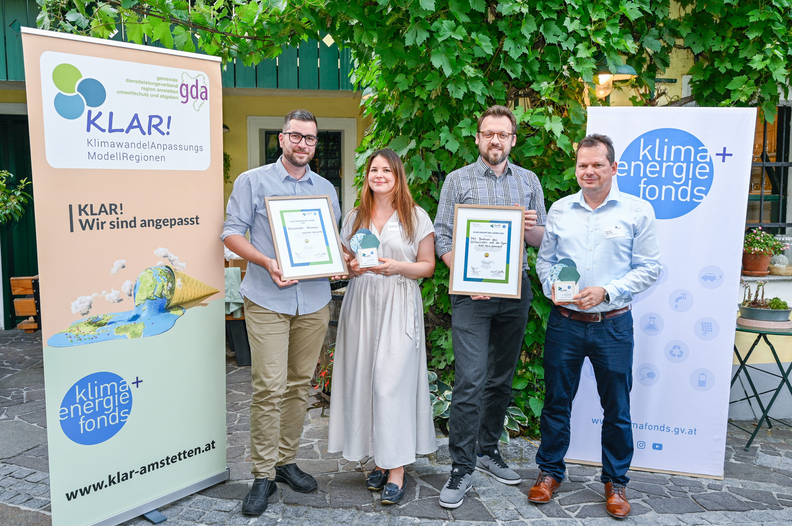 Mit dem Projekt „Mit Drohnen den Hitzeinseln auf der Spur“ hat sich die KLAR! Weiz-Gleisdorf (Regionsmanager Christian Hütter) die Auszeichnung „Projekt des Jahres“ geholt. Die Stadtgemeinde Weiz hat infolge einer hohen Flächenversiegelung mit ausgeprägten Hitze-Inseln zu kämpfen, die vor allem für vulnerable Gruppen großen Einfluss auf die Gesundheit haben. Um die komplexen Zusammenhänge rund um die Entstehung solcher Hitze-Hotspots zu verstehen und gezielt und wirkungsoptimiert Maßnahmen, wie etwa Begrünung, zu setzen, führte die KLAR! Weiz-Gleisdorf gemeinsam mit der AEE INTEC innovative Drohnen-Aufnahmen durch. Über eine Fläche von 59.000 m² konnten somit ein interaktives 3D-Stadtmodell entwickelt und konkrete Umsetzungsmaßnahmen für eine effektive und effiziente Klimawandelanpassung simuliert werden.
