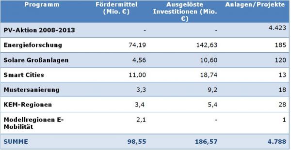 Auszug genehmigter Fördermittel des Klima- und Energiefonds in der Steiermark, 2007 bis Oktober 2014