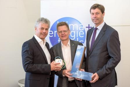 im Bild v.l.n.r.: v.l.n.r. DI Ingmar Höbarth, Klima- und Energiefonds, Gerfried Koch, KEM-Manager des Jahres, Sektionschef DI Günter Liebel, BMLFUW
