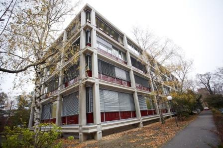 • die Fassade des WIFO mit erneuertem Portal (unter Einsatz einer Led Beleuchtung) und der beibehaltenen Außenansicht