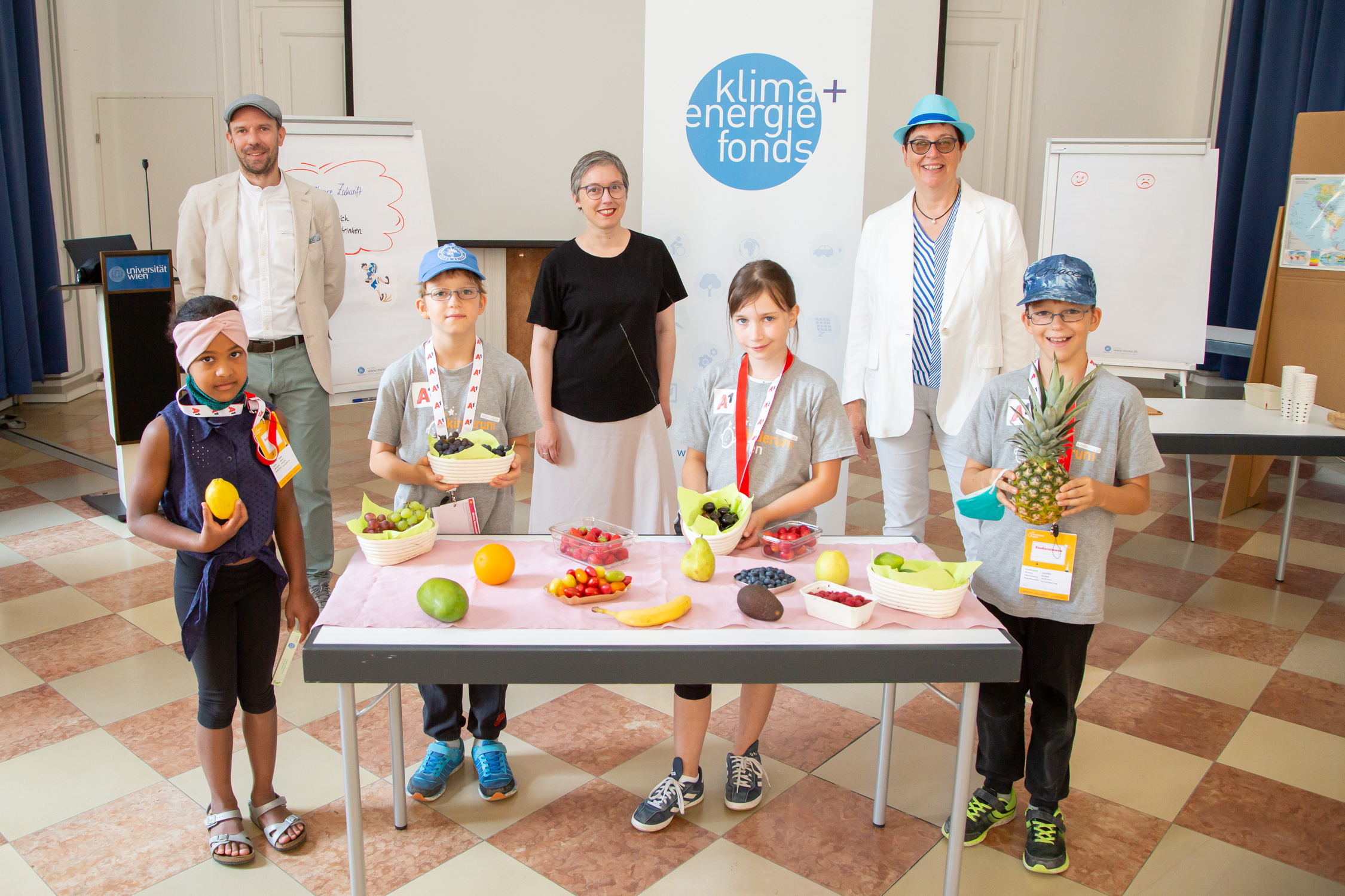 Allein in Wien werden täglich rund 4 Millionen Tonnen Lebensmittel und Getränke hergestellt, transportiert und zubereitet. Was wir essen und trinken wirkt sich dabei direkt auf uns und indirekt auf das Klima aus. Im Rahmen der KinderuniWien konnten am 22. Juli junge Wissbegierige zwischen 10 und 12 Jahren klimafreundlichem Essen auf die Spur gehen. Gefördert vom Klima- und Energiefonds, dotiert aus den Mitteln des Bundesministeriums für Klimaschutz (BMK), suchten die Nachwuchs-Forscher*innen beim Workshop „KOSTbare Zukunft – essen & trinken in unserer Stadt“ nach umweltfreundlichen Lebensmitteln in der Stadt.