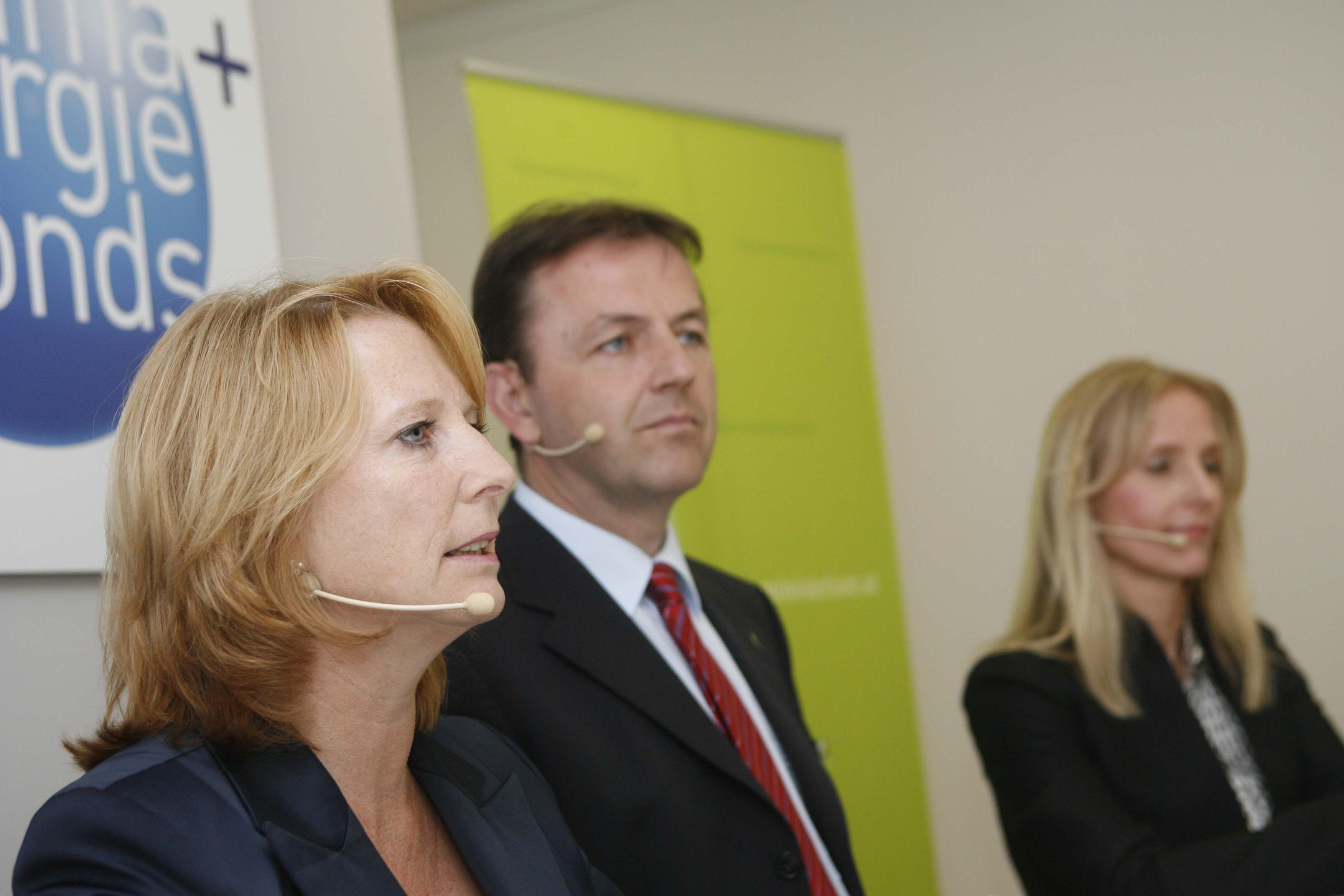 • Klima- und Energiefonds neu - Präsentation der Schwerpunkte 2009. v.l.n.r.: Doris Bures (Infrastrukturministerin), Niki Berlakovich (Umweltminister), Eveline Steinberger (GF Klima- und Energiefonds). APA-OTS FOTO: Robert Strasser