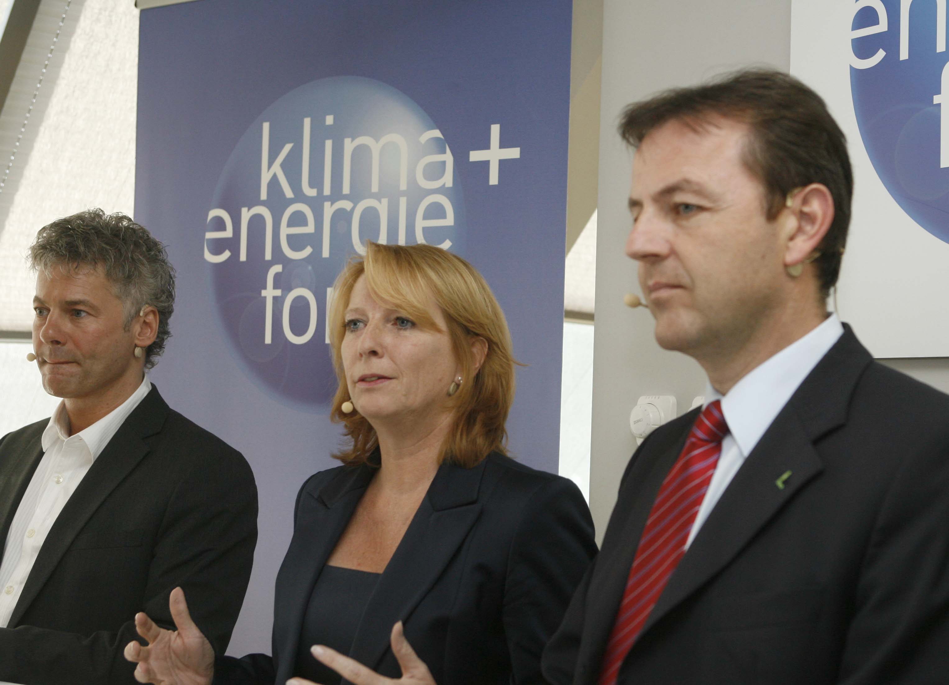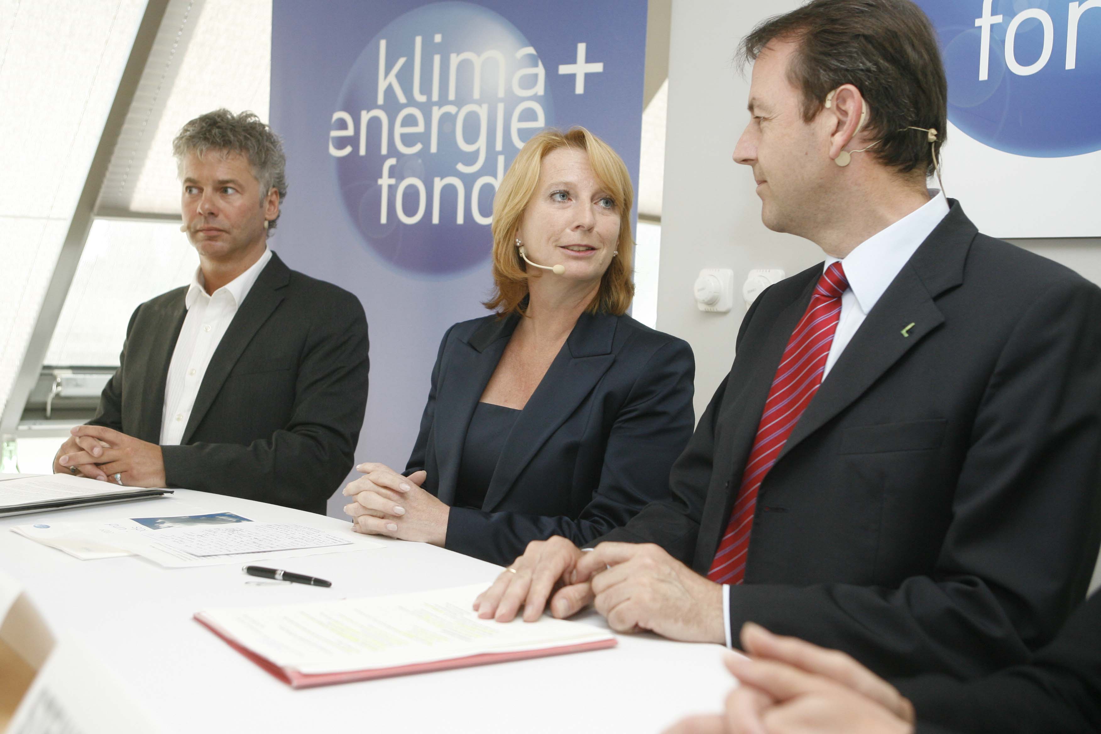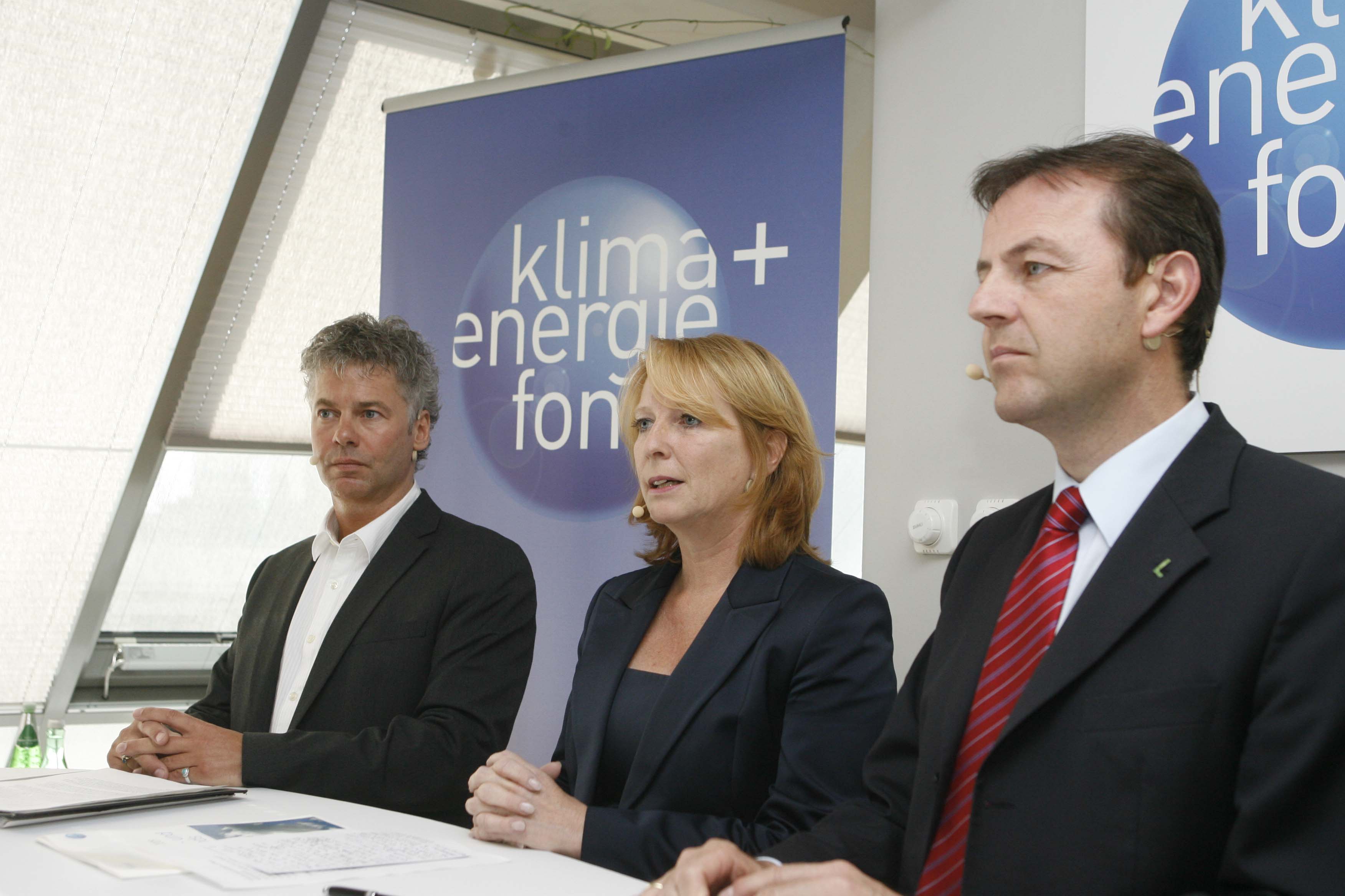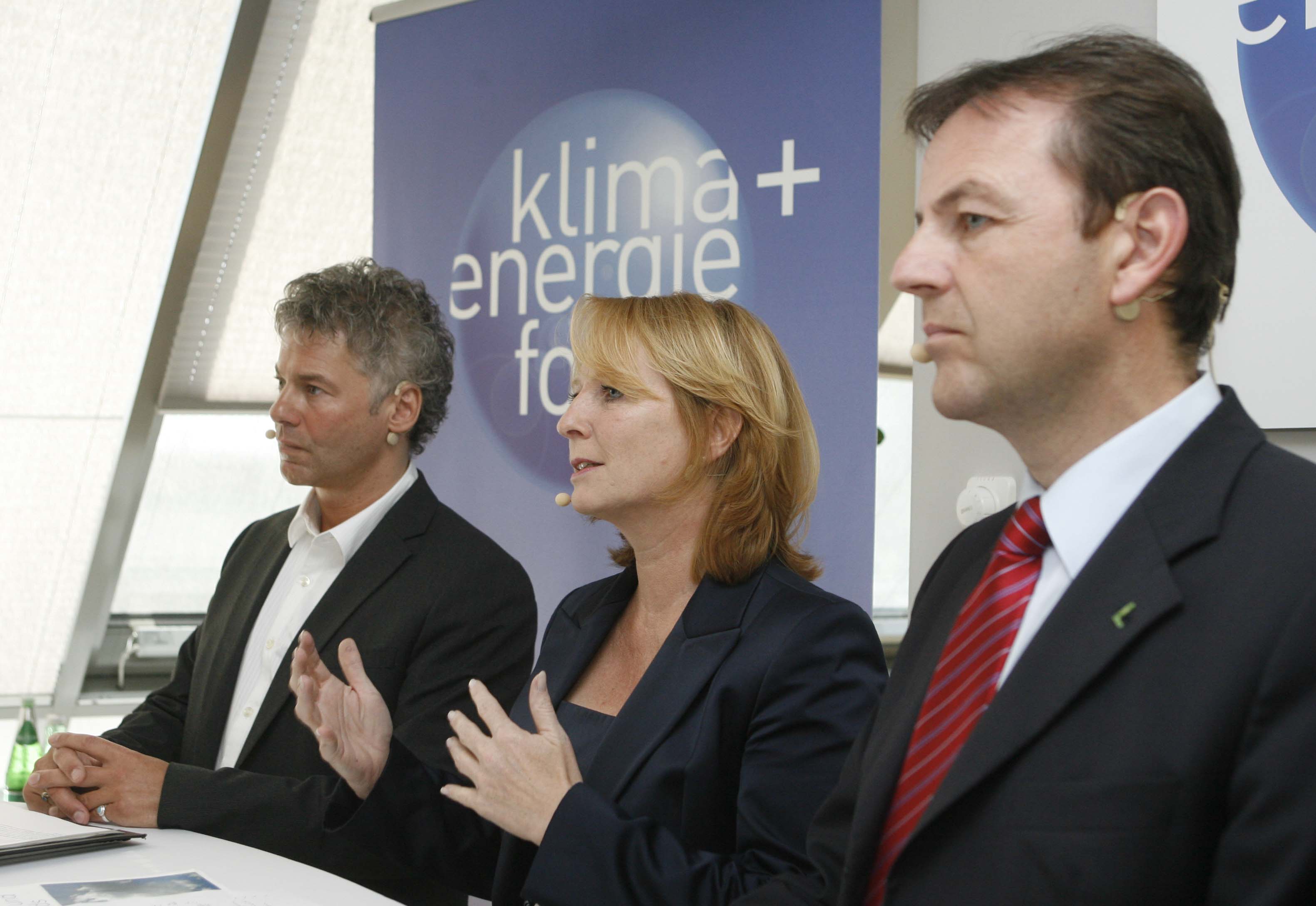• Klima- und Energiefonds neu - Präsentation der Schwerpunkte 2009. v.l.n.r.:Ingmar Höbarth (GF Klima- und Energiefonds), Doris Bures (Infrastrukturministerin), Niki Berlakovich (Umweltminister). APA-OTS FOTO: Robert Strasser