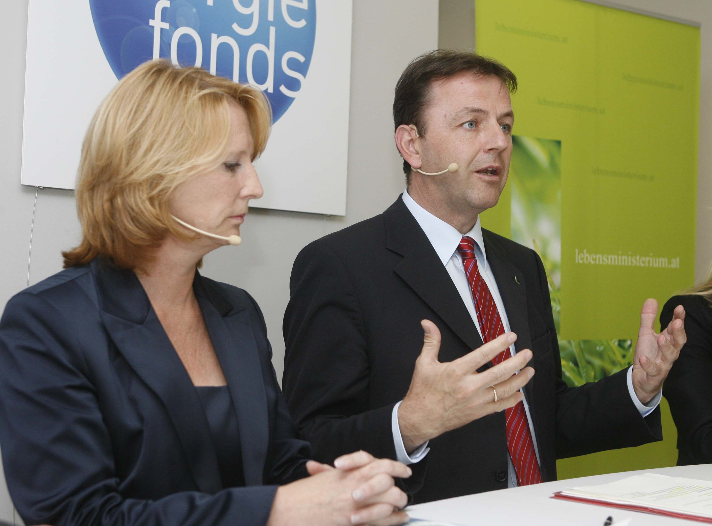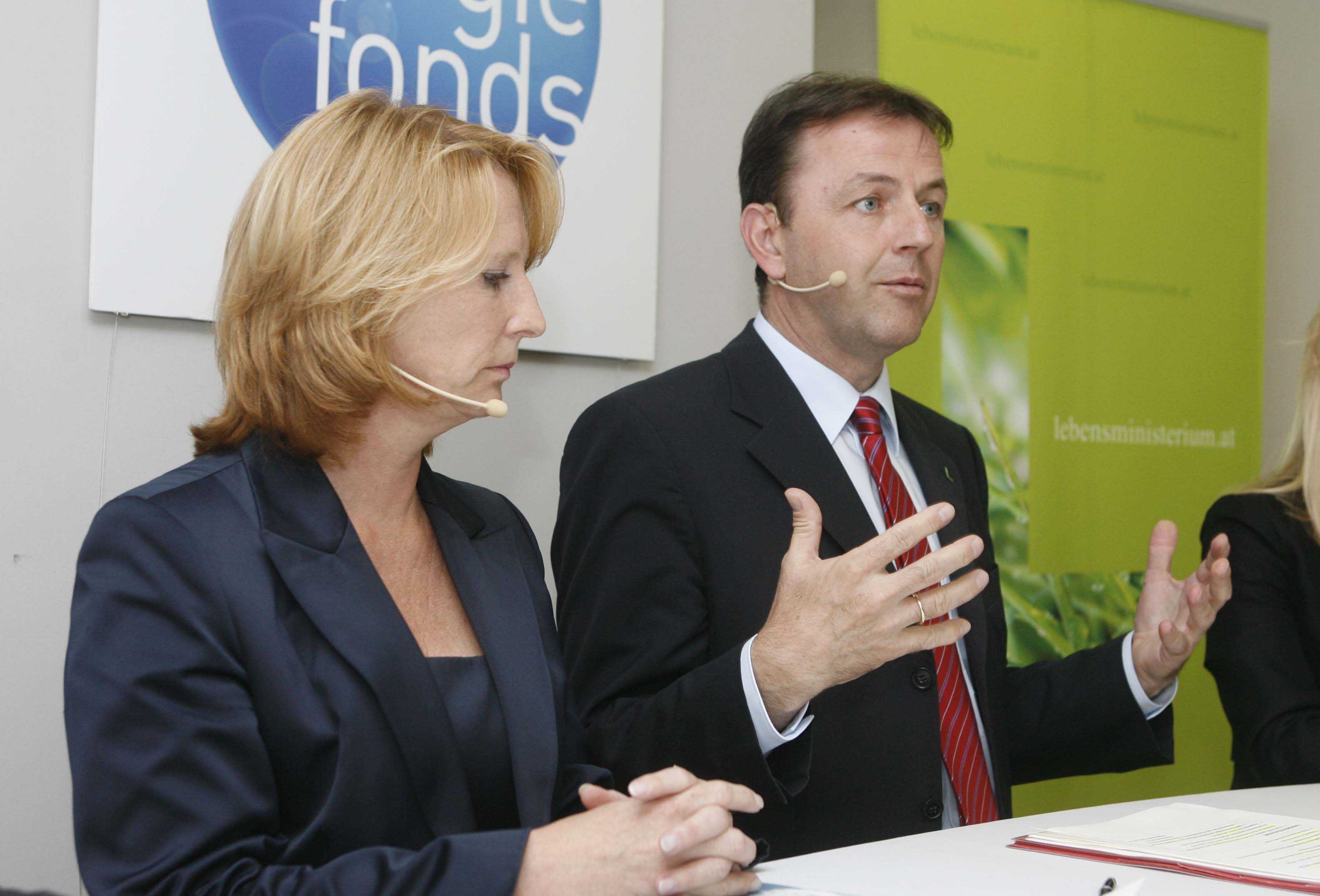 • Klima- und Energiefonds neu - Präsentation der Schwerpunkte 2009. v.l.n.r.: Doris Bures (Infrastrukturministerin), Niki Berlakovich (Umweltminister). APA-OTS FOTO: Robert Strasser