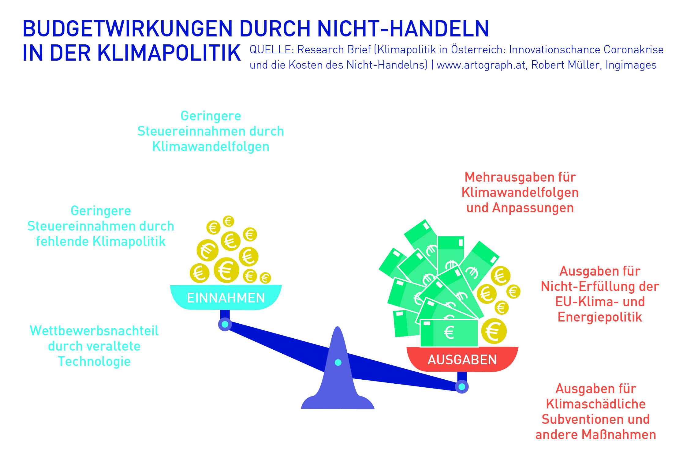 Bis 2050 prognostiziert die Studie ein Anwachsen auf 20 Milliarden Euro. Dabei betreffen die Auswirkungen der Klimakrise und des Festhaltens an fossilen Systemen das öffentliche Budget, die heimische Wirtschaft und unsere Gesundheit massiv.