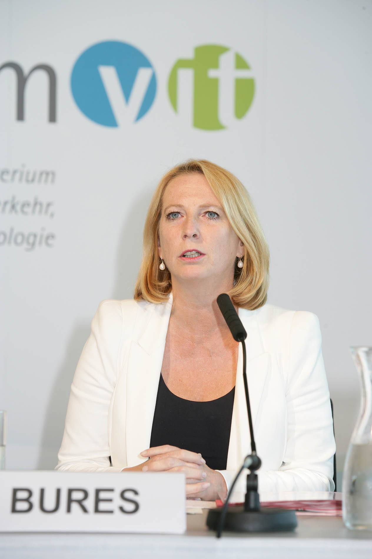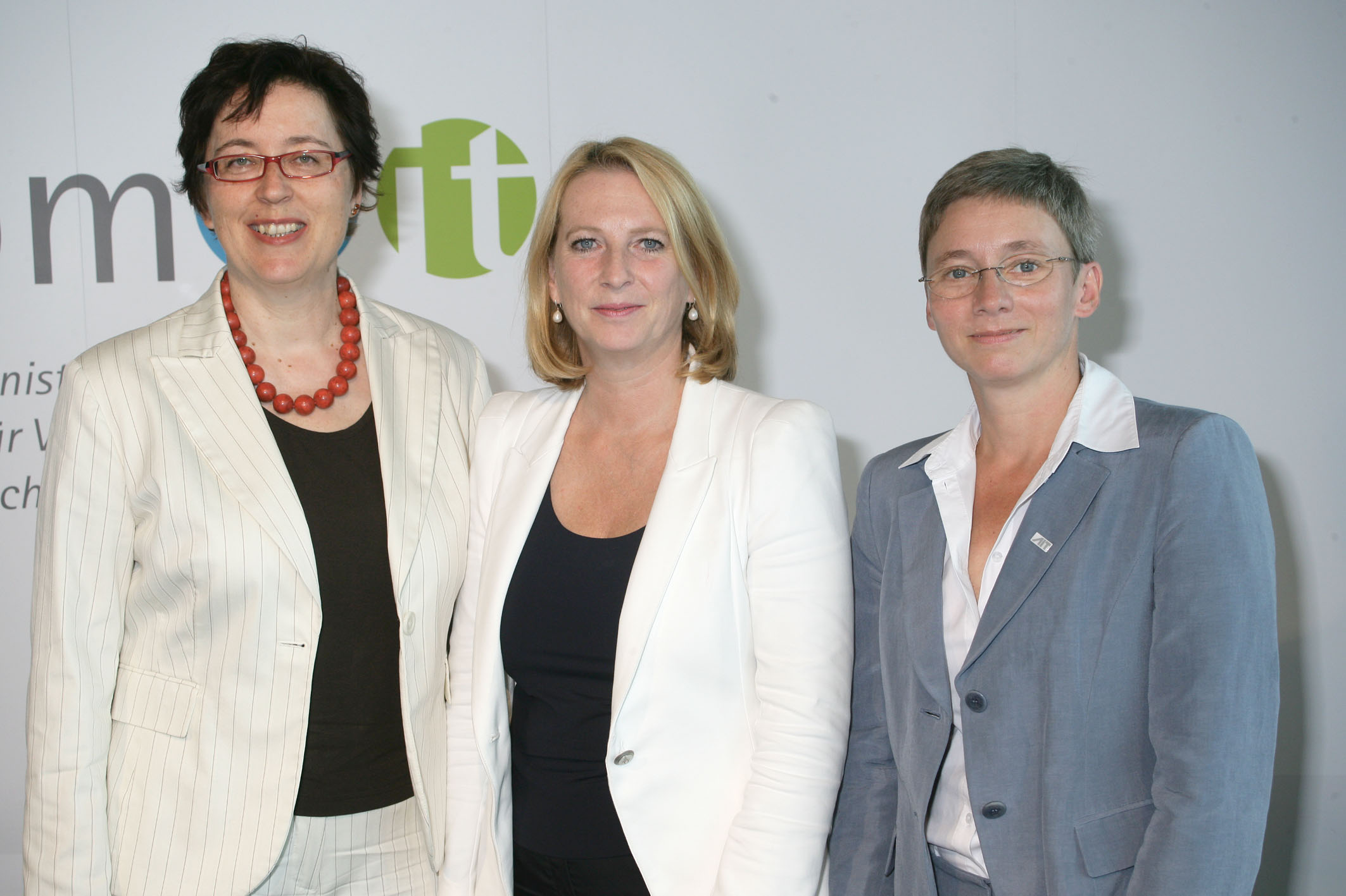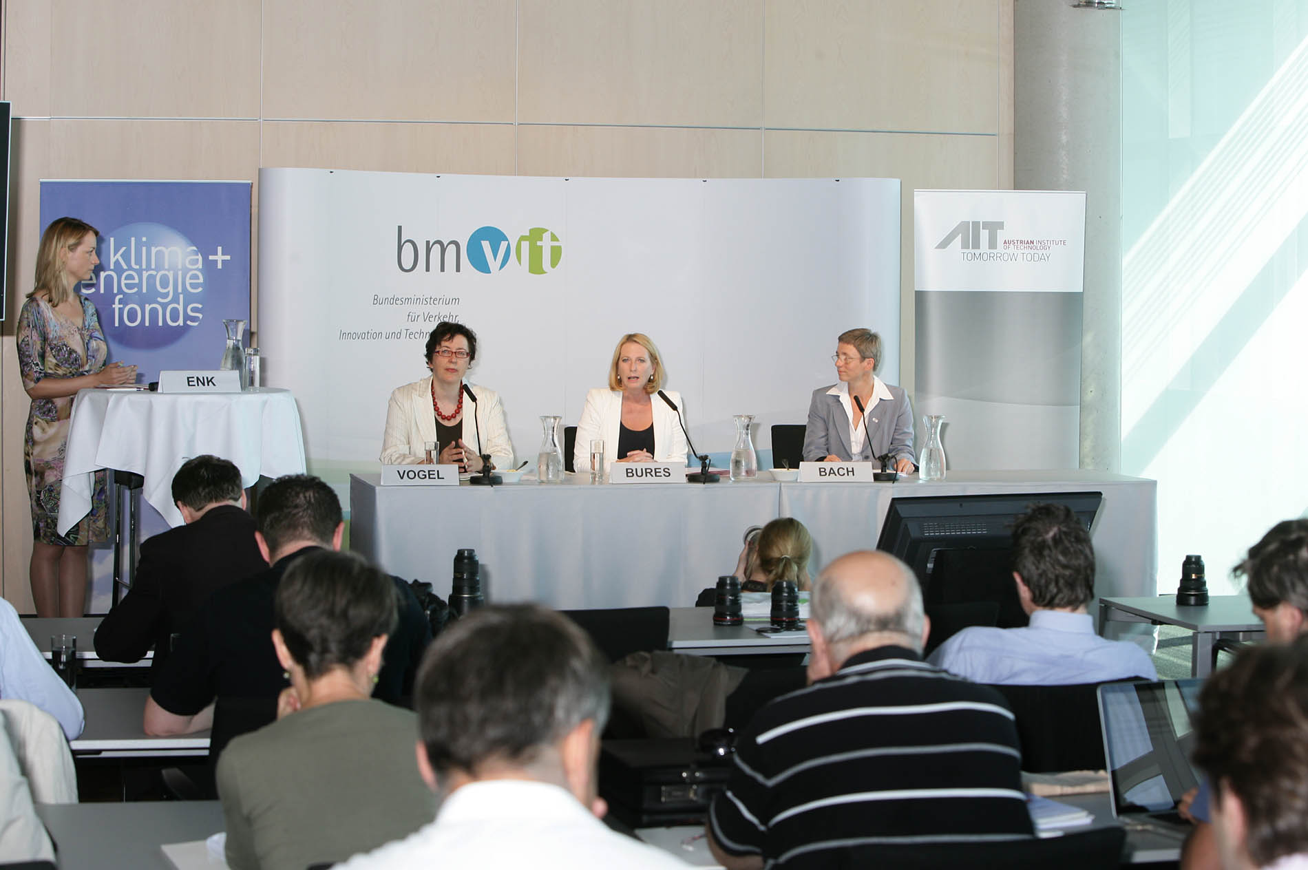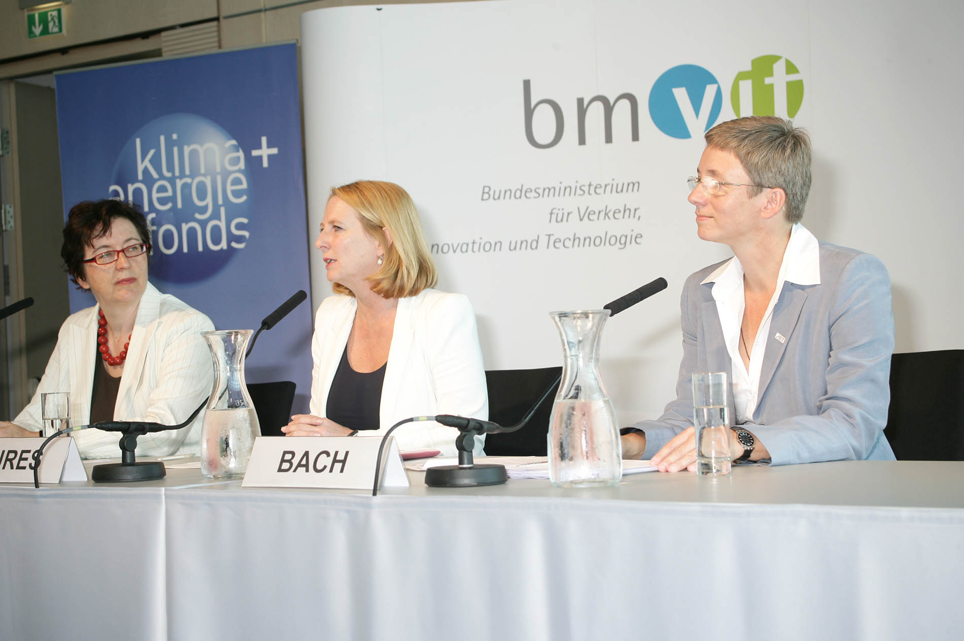 "Mit weniger Energieverbrauch mehr bewegen" - Austrian Institute of Technology (C) fotodienst, Martina Draper Foto: vlnr: Theresia Vogel, GF Klimafonds, Doris Bures, Infrastrukturministerin, Brigitte Bach, Leiterin Energy Department AIT