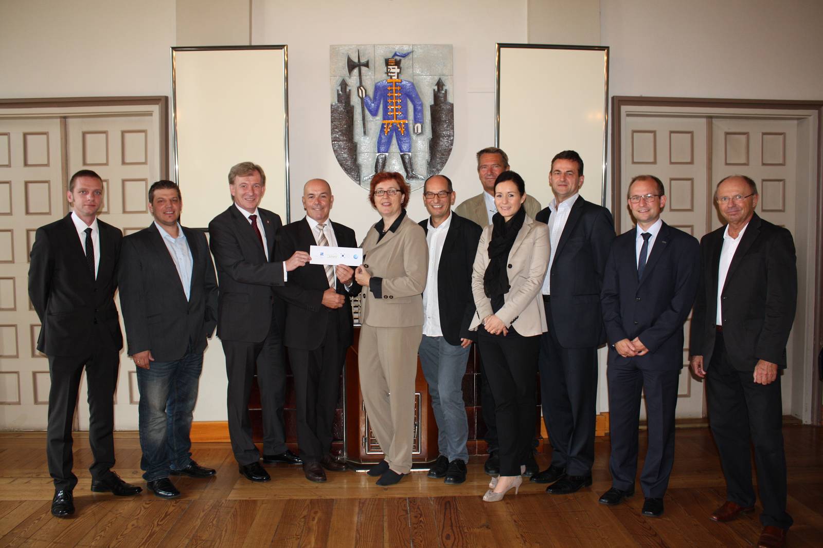 im Bild v.l. DI Christian Pinter, Ing. Andreas Schneemann, Dr. Alois Ecker, Bürgermeister Georg Rosner, DI Theresia Vogel, DI Dr. Manfred Tragner, DI Klaus Gartner, Silvia Unger, DI Franz Horvath, Dr. Ernst Röhrling, und Ing. Josef Kinzl (v.l.)