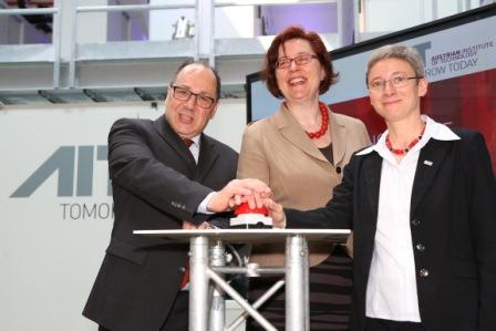 Im Bild vlnr.: Ingolf Schädler (BMVIT), Theresia Vogel (Managing Director of the Austrian Climate and Energy Fund), Brigitte Bach (Head of AIT Energy Department)