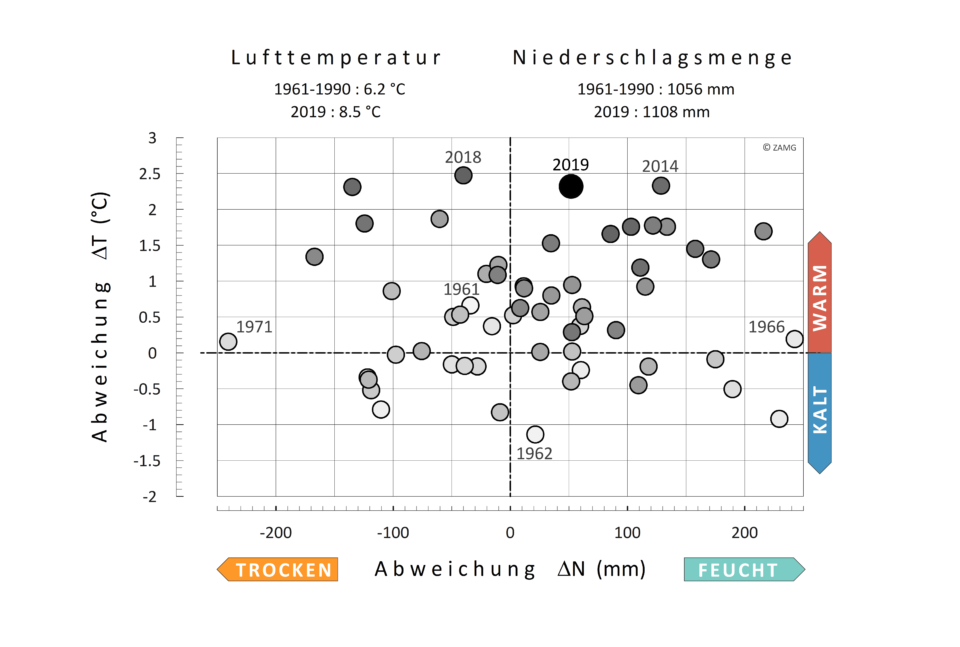Für 2019 wurde erstmals der Klimarückblick auch für alle neun Bundesländer aufbereitet. Online stehen alle Dokumente unter: https://www.klimafonds.gv.at/publication/klimastatusbericht2019/ und https://ccca.ac.at/wissenstransfer/klimastatusbericht zur Verfügung.