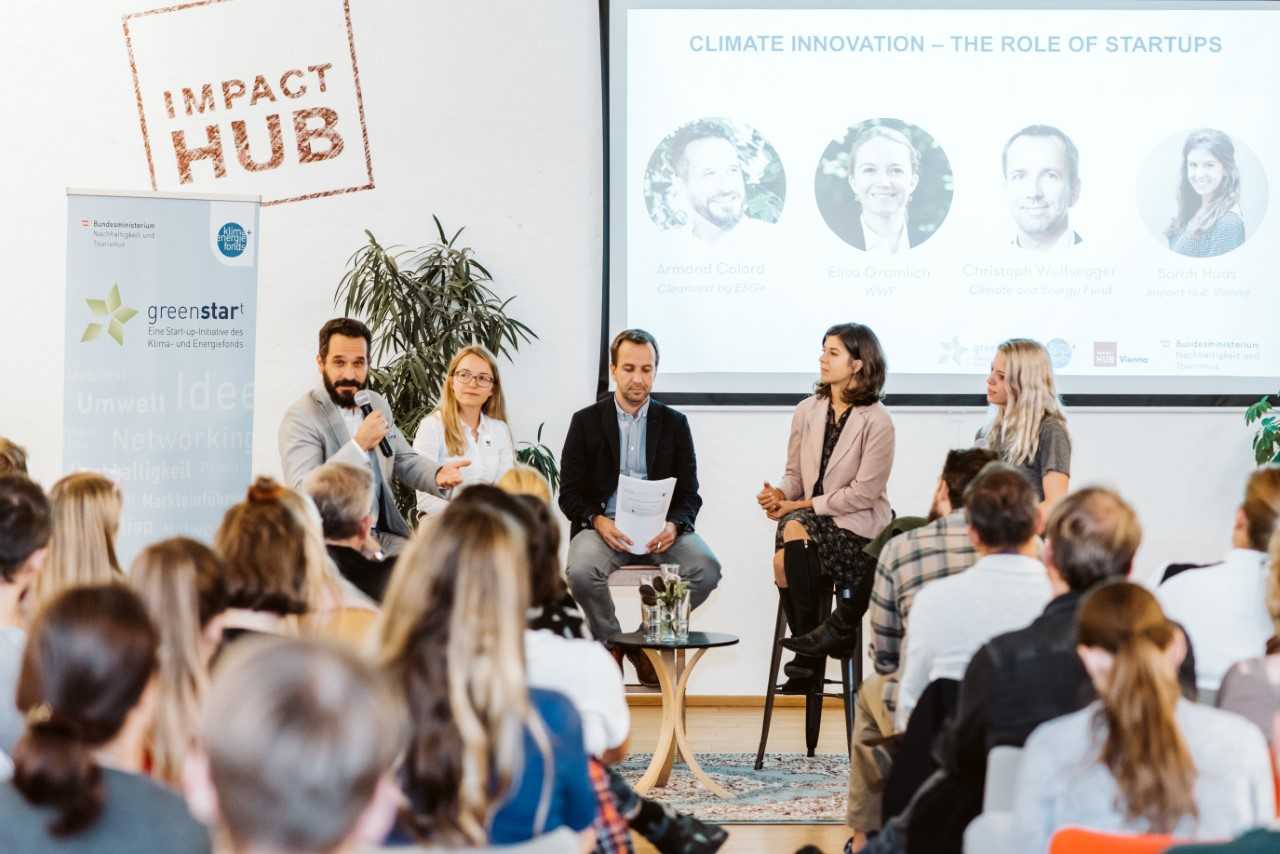 Zu den Highlights des Events zählten u.a. die Podiumsdiskussion zur Rolle von Start-ups für Climate Action – mit den Speakern Christoph Wolfsegger (Klima- und Energiefonds), Elisa Gramlich (WWF), Armand Colard (Cleanvest by ESG+) und Sarah Haas (Climate Hub). In Roundtable Breakout Sessions wurden Projektideen zu den Themen Erneuerbare Energie, Energieeffizienz, Mobilität, Landwirtschaft / Bioökonomie präsentiert und mit ExpertInnen sowie greenstart Alumni der vergangenen Durchgänge diskutiert. Die TeilnehmerInnen sind sich einig: Die Agilität der Start-ups spielt eine wichtige Rolle im Aufbrechen gewohnter Strukturen, die für die Lösung der Klimakrise nötig ist.