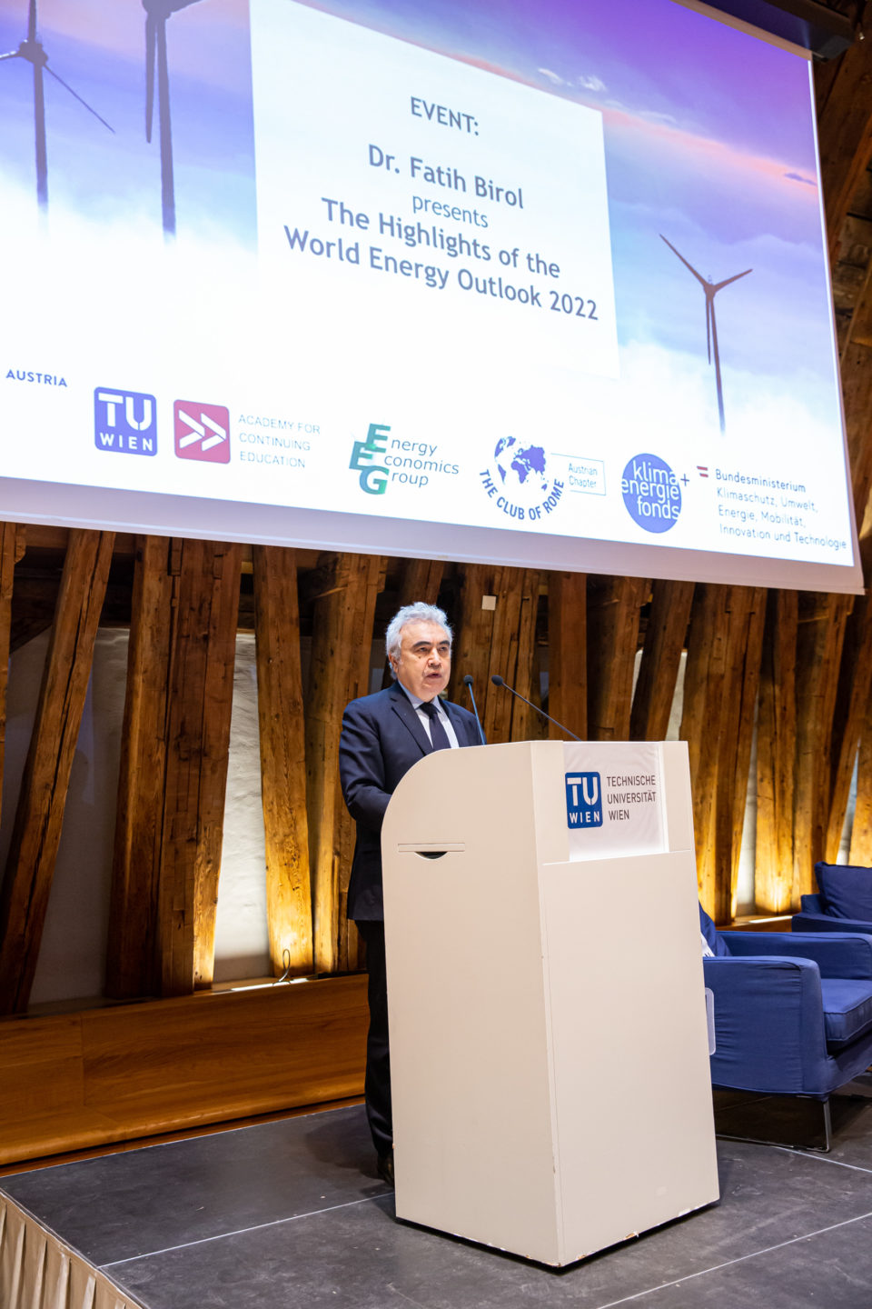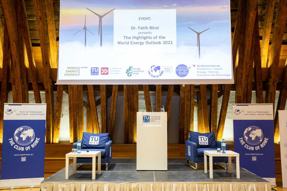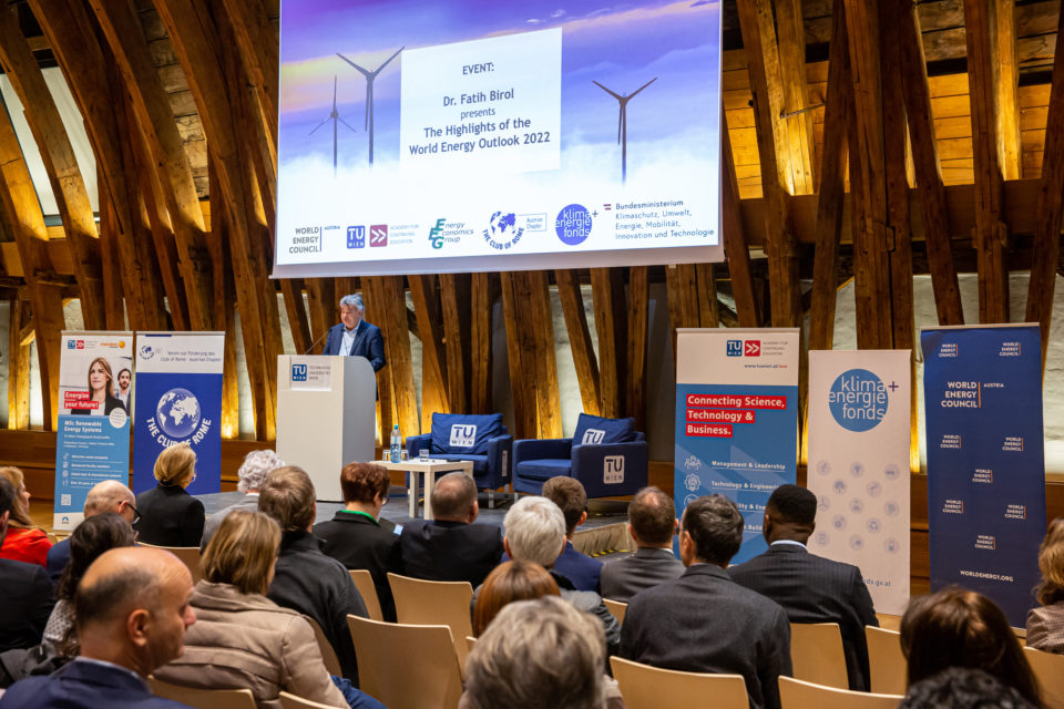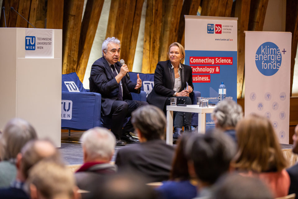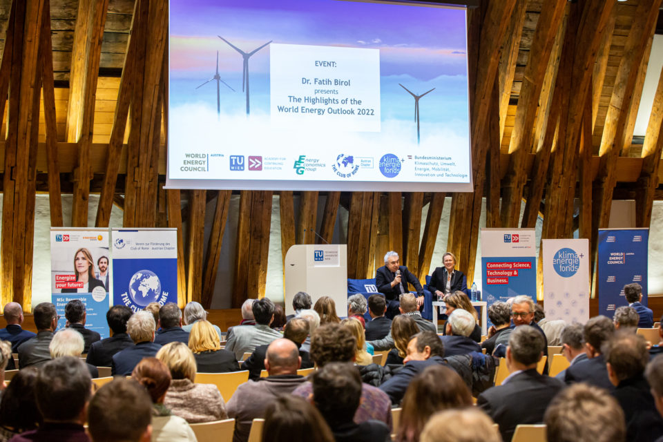 Der diesjährige „World Energy Outlook“ (WEO) wurde heute von Fatih Birol, Exekutivdirektor der Internationalen Energieagentur (IEA), im Kuppelsaal der TU Wien vor knapp 300 Gästen vorgestellt. Der im Oktober veröffentlichte Weltenergieausblick gilt als die maßgeblichste Quelle für Analysen und Prognosen in der Energiewelt. Birol war auf Einladung des Austrian Chapter des Club of Rome, des World Energy Council Austria, der TU Wien, des Klima- und Energiefonds und des Klimaschutzministeriums in Wien zu Gast. Die Veranstaltung wurde von Vizekanzler Werner Kogler in Vertretung von Klimaschutzministerin Leonore Gewessler eröffnet.